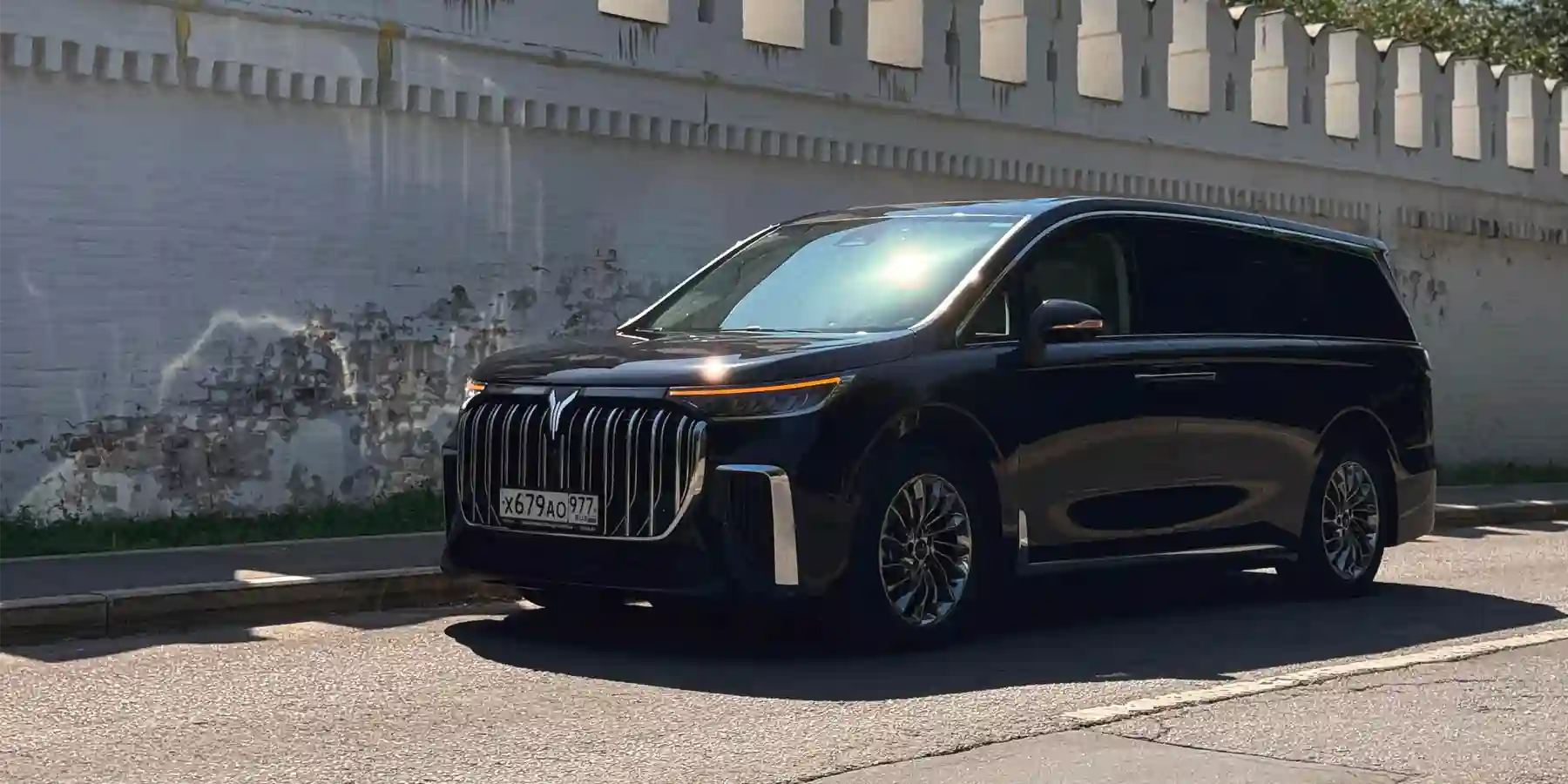Знатоков автомобильного дизайна порадует такая деталь, как дверные ручки, соединенные ну прям в стиле Rolls-Royce. Весьма большие для минивэна 20-дюймовые колеса — как вишенка на торте. Хотя нет, на эту роль скорее подходит светодиодная полоса с фирменной эмблемой посередине, соединяющая фары головного света.